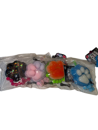 A sticky paw print shaped taba squishy, used inside or outside of bag.